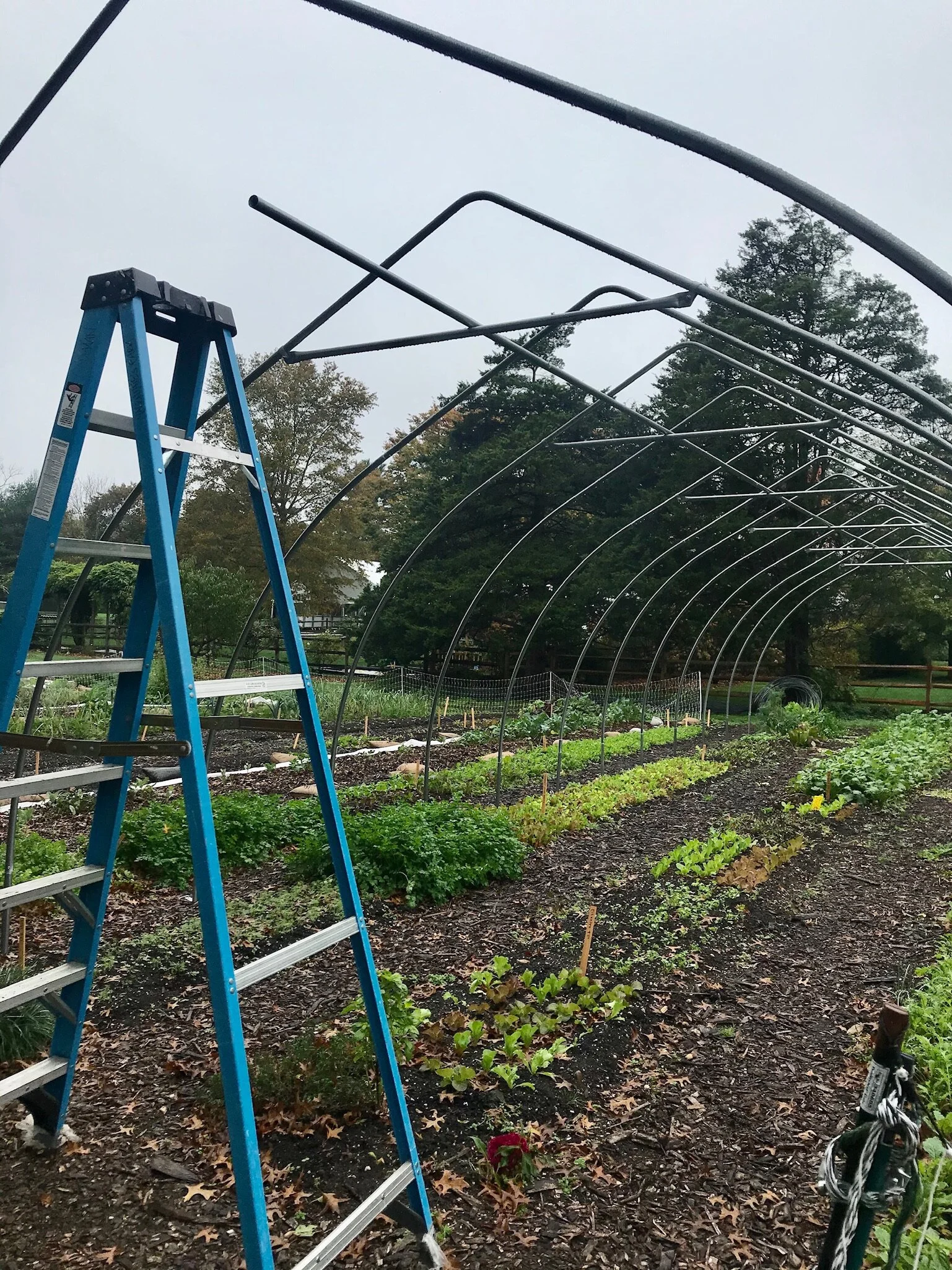 One of the largest projects we took on during the lead up to the Persephone Days, was the construction of our glorious caterpillar tunnel. Thanks to a period of low winds, we were able to assemble the tent rather quickly, and we couldn’t be more thrilled! The tunnel will remain unheated and we’ll be able to grow produce throughout the winter. Our main tunnel crops will be spinach, carrots, scallions, lettuces, herbs, and various Asian greens.