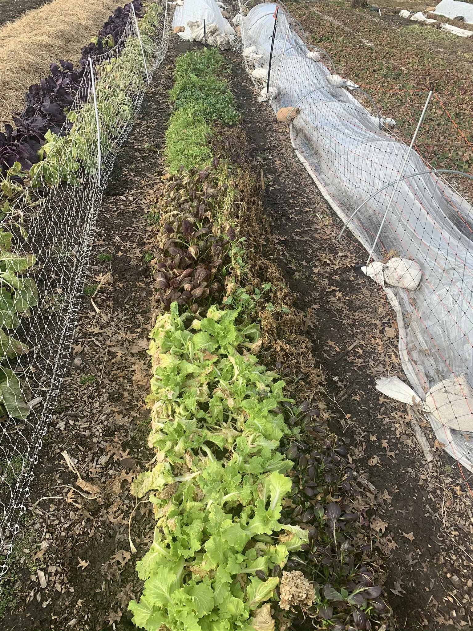 Not only do our hens get a tasty, nutritious meal and allowed to fully express their inner “chicken-ness”, they also aerate the soil by scratching the top layer and “recycle” those nutrients back into the soil with their droppings. If you’re trying this yourself, make sure to allow beds to rest 90-120 days so all pathogens can be properly composted.