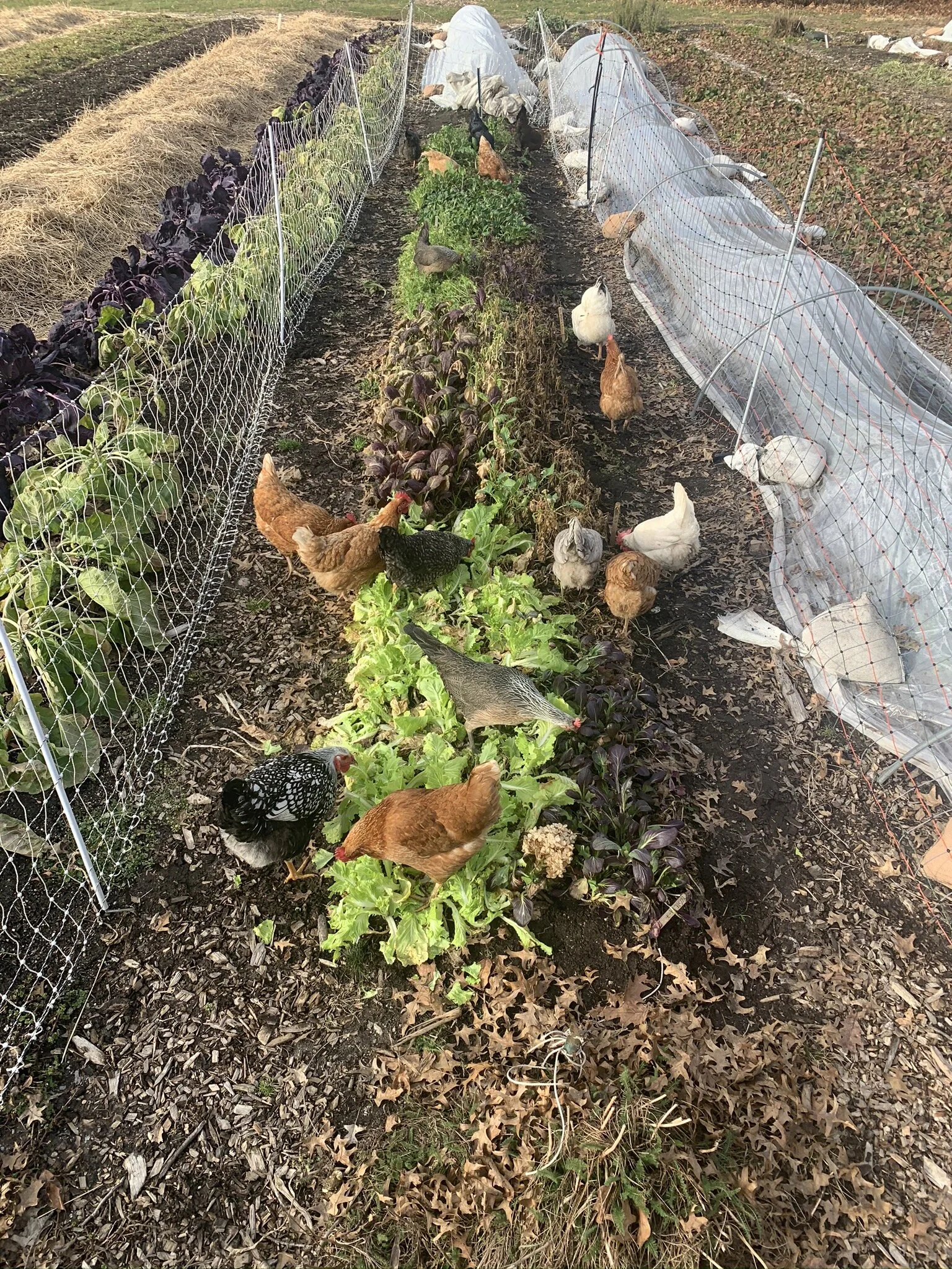 Have you ever considered putting your chickens to work on your farm? Here at Valentines Farm we are experimenting with using our chickens to help till and fertilize our beds for the spring season.
